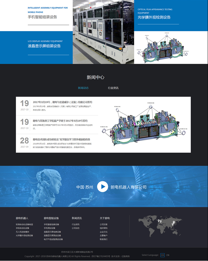 朗電機(jī)器人有限公司以及朗電控股的欣揚(yáng)電子科技有限公司、泰科盛自動(dòng)化系統(tǒng)有限公司、奧斯坦丁軟件科技有限公司、朗電智能設(shè)備技術(shù)有限公司是業(yè)內(nèi)高端手機(jī)智能組裝設(shè)備、液晶顯示屏組裝設(shè)備、液晶顯示屏功能檢測(cè)設(shè)備、光學(xué)膜外觀缺陷檢測(cè)設(shè)備及非標(biāo)定制設(shè)備的制造商。